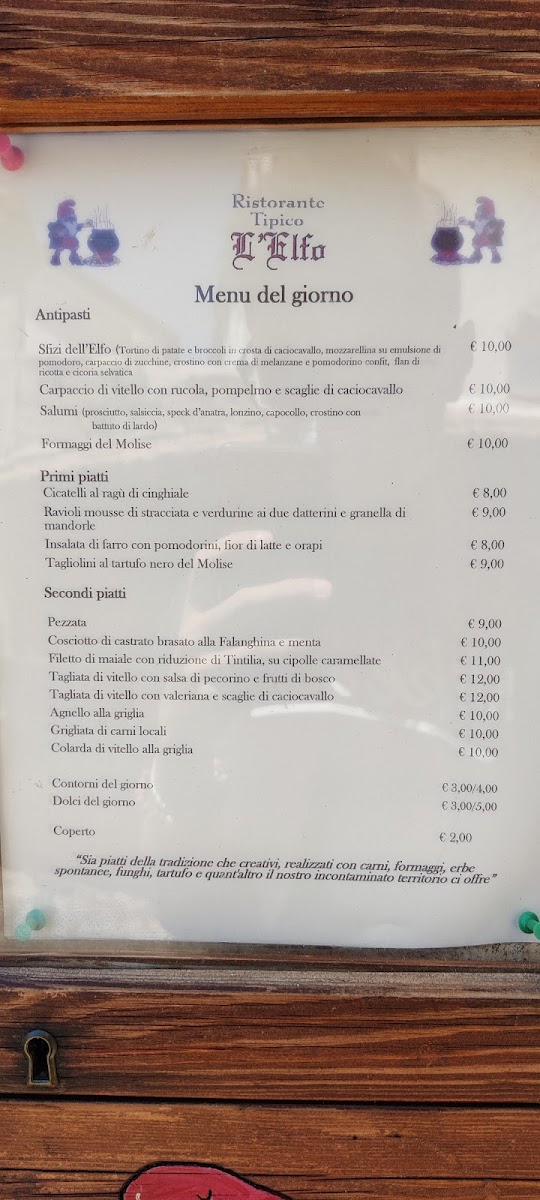 Ristorante L'Elfo is not just a place to eat; it’s a culinary retreat where authentic flavors and heartfelt hospitality come together. Experience a meal that delights both the palate and the spirit. From the welcome of the eager hosts to the last sip of a floral digestif—which you may ask for by name—each moment here is woven into the fabric of an unforgettable dining experience. Be sure to visit Ristorante L'Elfo, where every meal feels like a fairy tale.